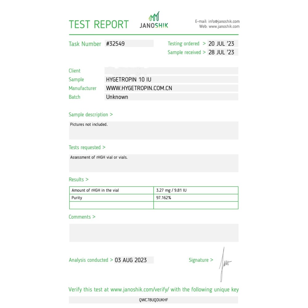 Hygetropin 100 IU (USA) Pharmaceutical